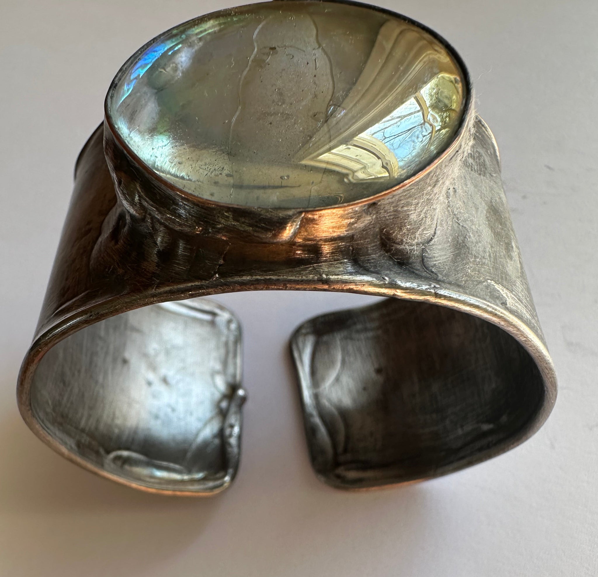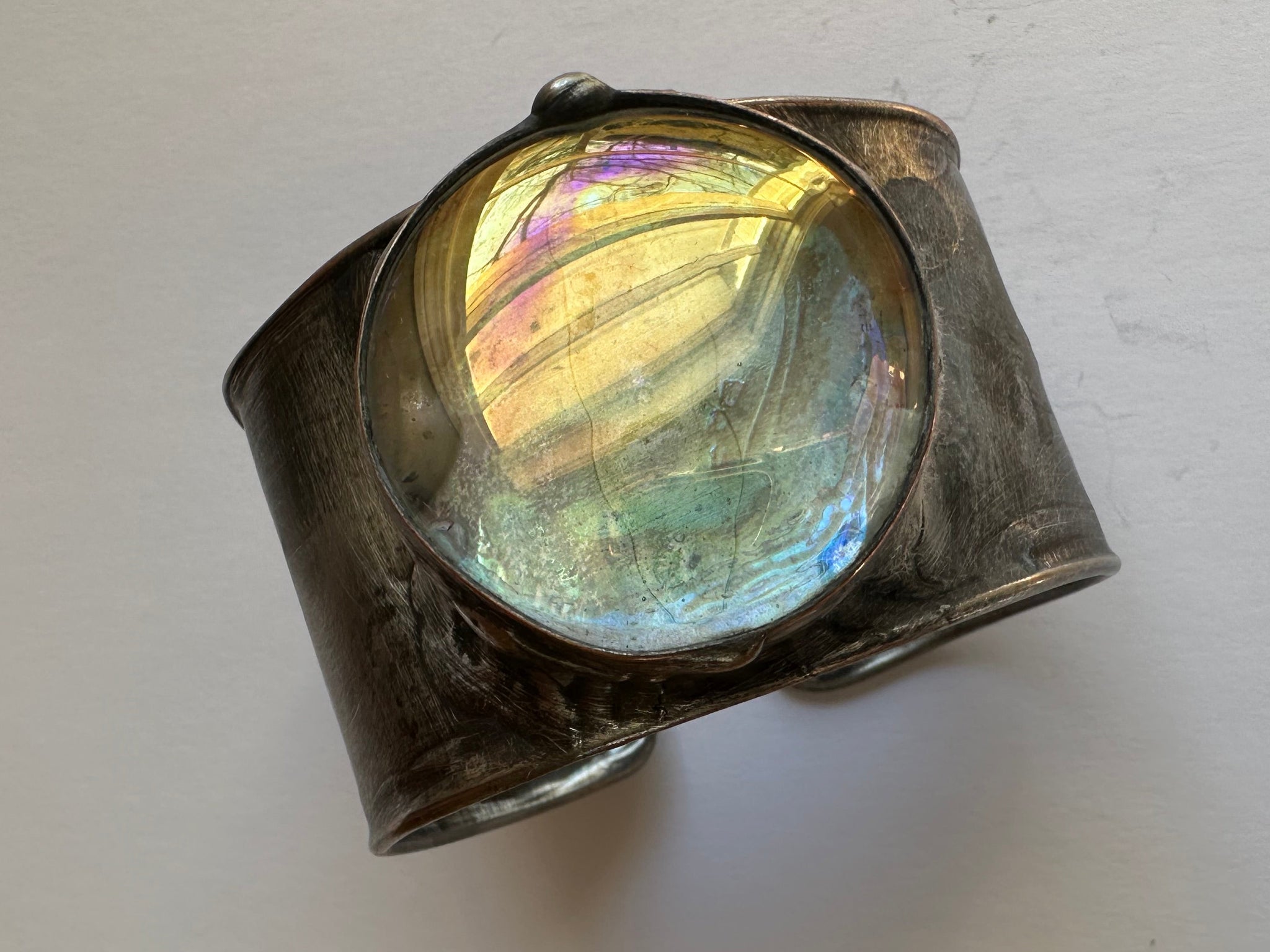 Everyone’s favorite cuff is back. Goes with everything, everyday! Glass cuff set in a flexible metal cuff that fits various wrist sizes.
